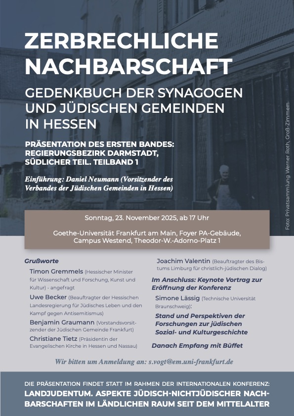 Das mehrbändige Werk Zerbrechliche Nachbarschaft. Gedenkbuch der Synagogen und jüdischen Gemeinden in Hessenerforscht und dokumentiert erstmals umfassend die Geschichte der jüdischen Gemeinden und ihrer Synagogen auf dem Gebiet des Bundeslandes Hessen. In aufwendiger Darstellung rekonstruiert es die Geschichte des jüdischen Alltags in den einzelnen Orten, die Intensität des jüdisch-nichtjüdischen Miteinanders über die Jahrhunderte hinweg, aber auch die stets vorhandene Diskriminierung und Ausgrenzung sowie das Ausmaß der Zerstörung und der Verbrechen, welche die jüdischen Gemeinden in der Zeit des Nationalsozialismus erlitten haben. Den roten Faden bildet dabei das Schicksal der Synagogen, die in ihrer Entstehung, Entwicklung und Architektur ausführlich dargestellt werden. Der erste Band des Gedenkbuchs widmet sich den Synagogen und jüdischen Gemeinden in den Landkreisen Darmstadt-Dieburg und Offenbach sowie in den Städten Darmstadt und Offenbach. |